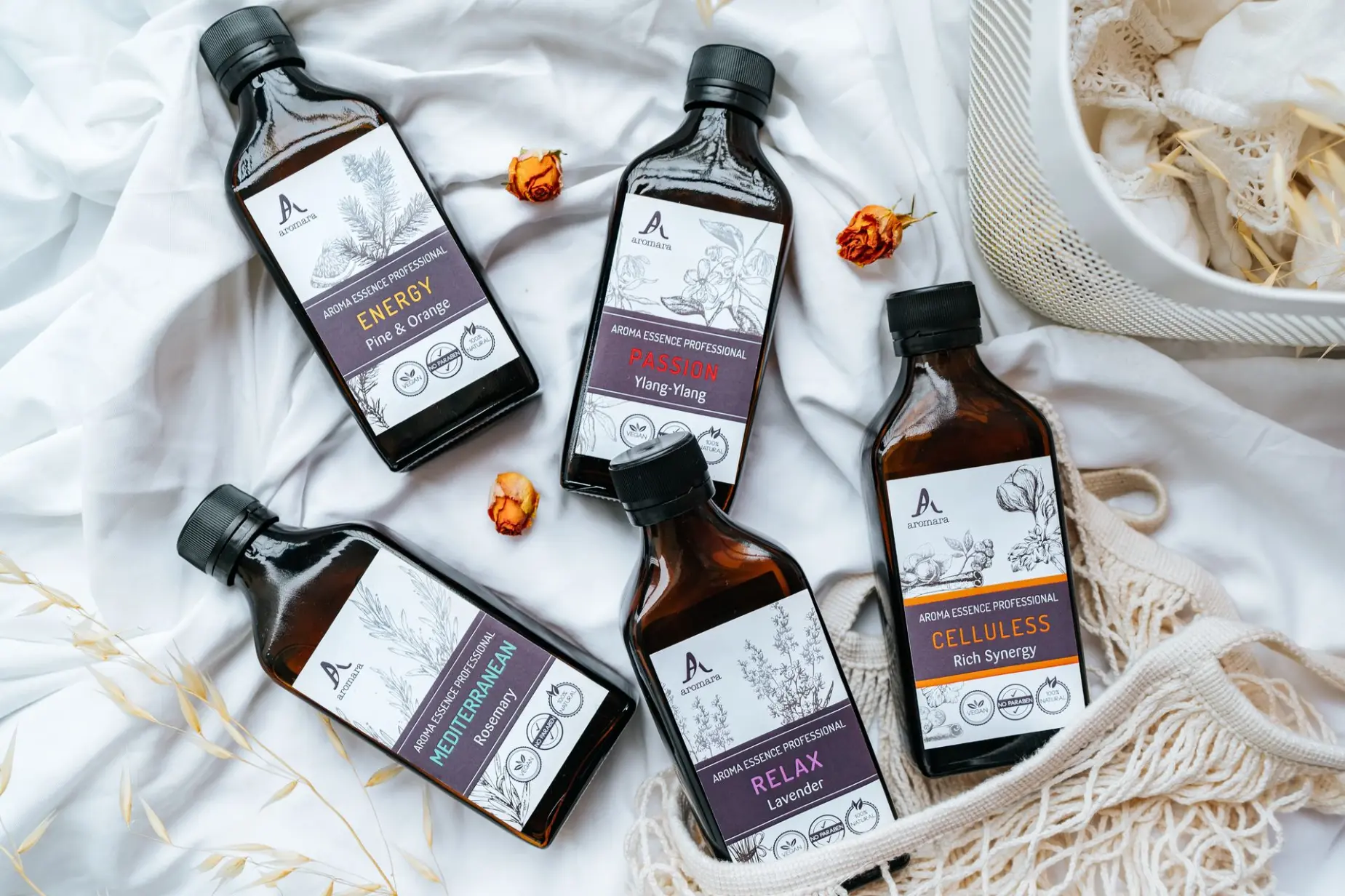 Aromara ulja za masažu i njegu tijela dolaze u pakiranjima od 200 i 1000 ml, a asortiman uključuje i tri bazna ulja za masažu: SENSITIVE, ORIGINAL i RICH.